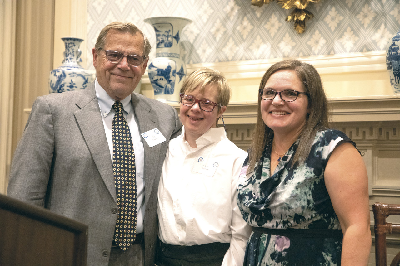 The evening’s banquet highlight was a presentation by Village resident Carrie Bergeron, who was joined by her father, Tim of Dolgeville, and sister, Katie Peglow-Bergeron of Fairport. A children’s book author and lifelong advocate for people with Down syndrome, Carrie spoke of how Alzheimer’s disease impacts those with Trisomy 21 and movingly related her decision to join the Pathfinder community.